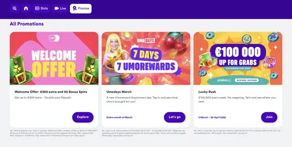 Spillere sÞker noen ganger etter en bonus uten innskudd etter registrering eller spÞr om en Casumo casino uten innskuddsbonus. Hvis et tilbud finnes, vil det vises i kampanjeomrÄdet ditt etter Casumo-innlogging.